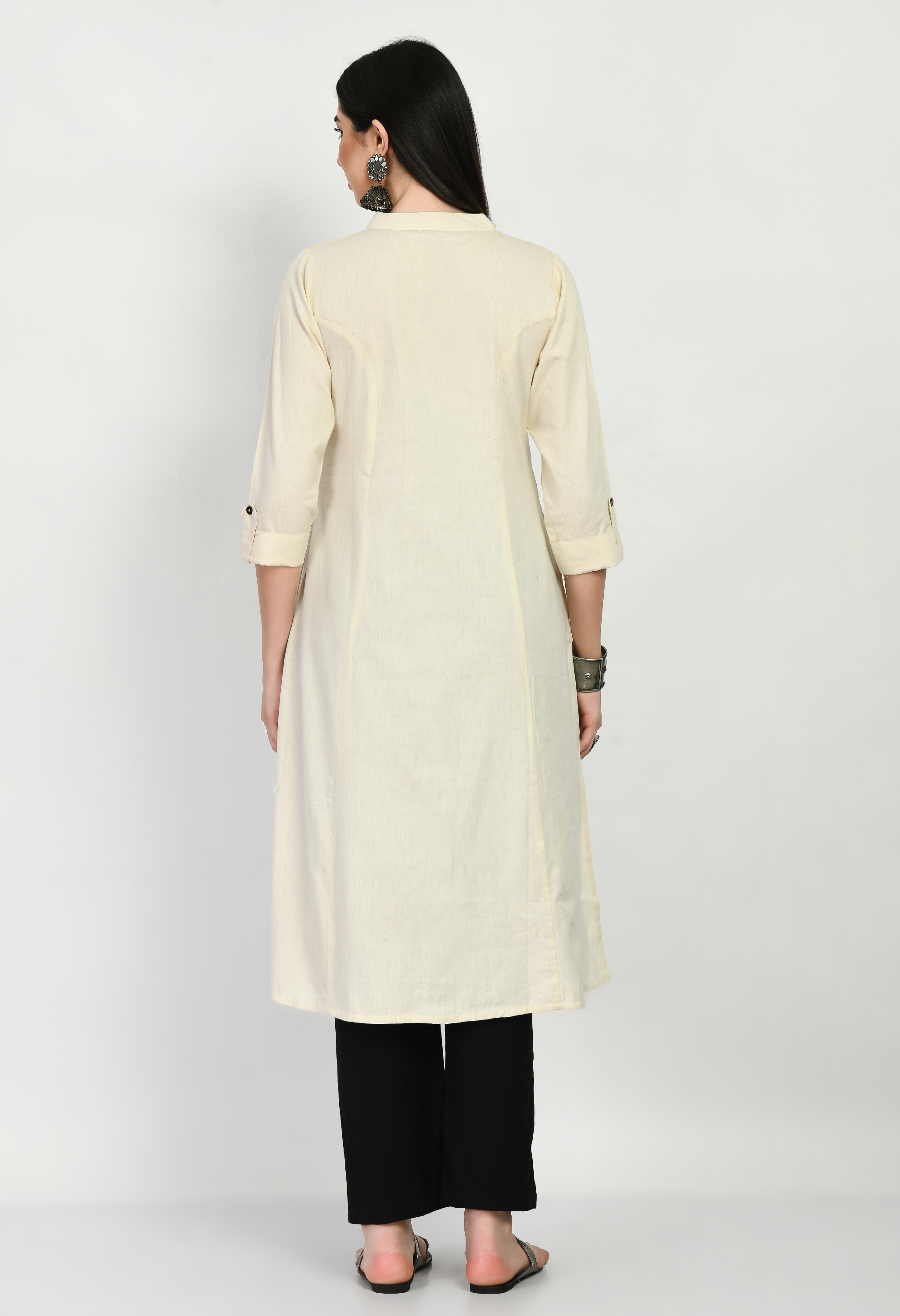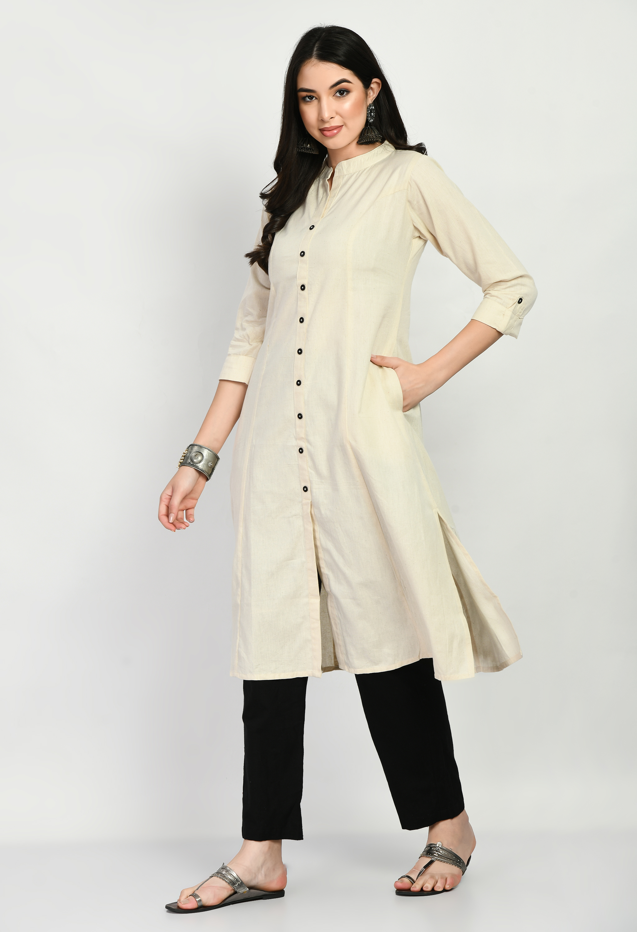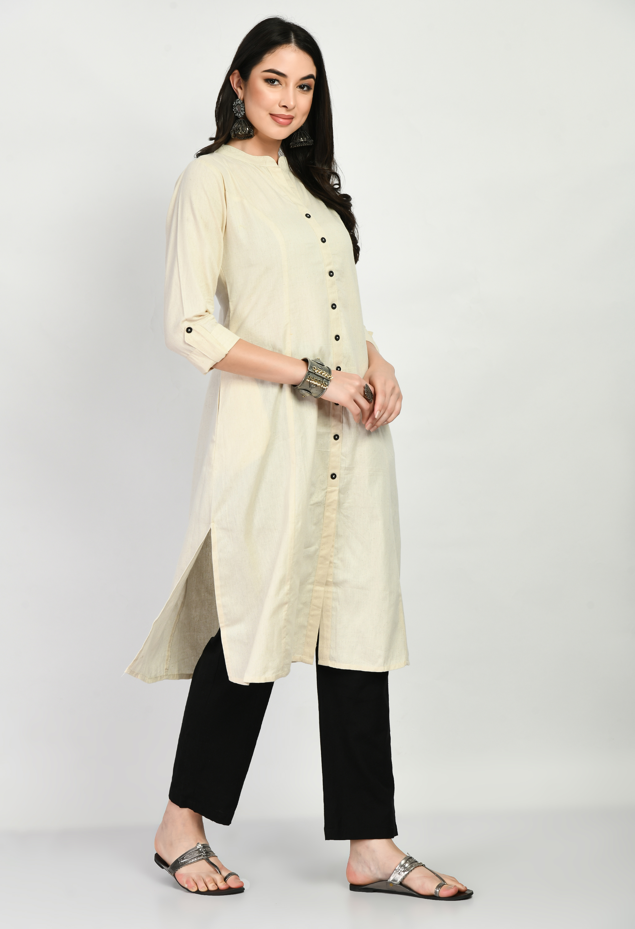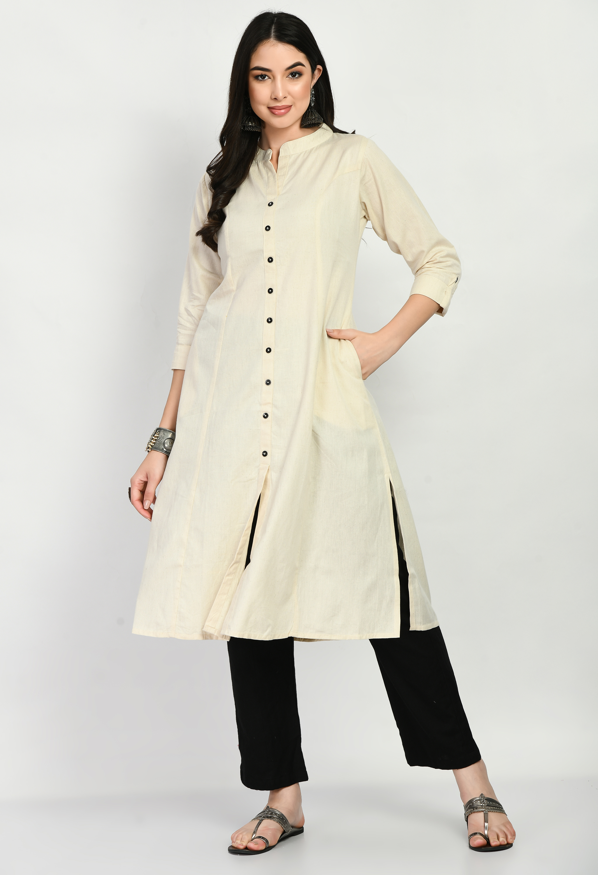 | Product Name: | Women Solid Pure Cotton Frontslit Kurta (White) |
